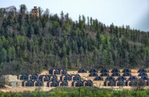Poniżej zamku ulokowano domy wypoczynkowe i w ten sposób historia tego miejsca zapisała zupełnie nowy rozdział kształtowania przestrzeni …